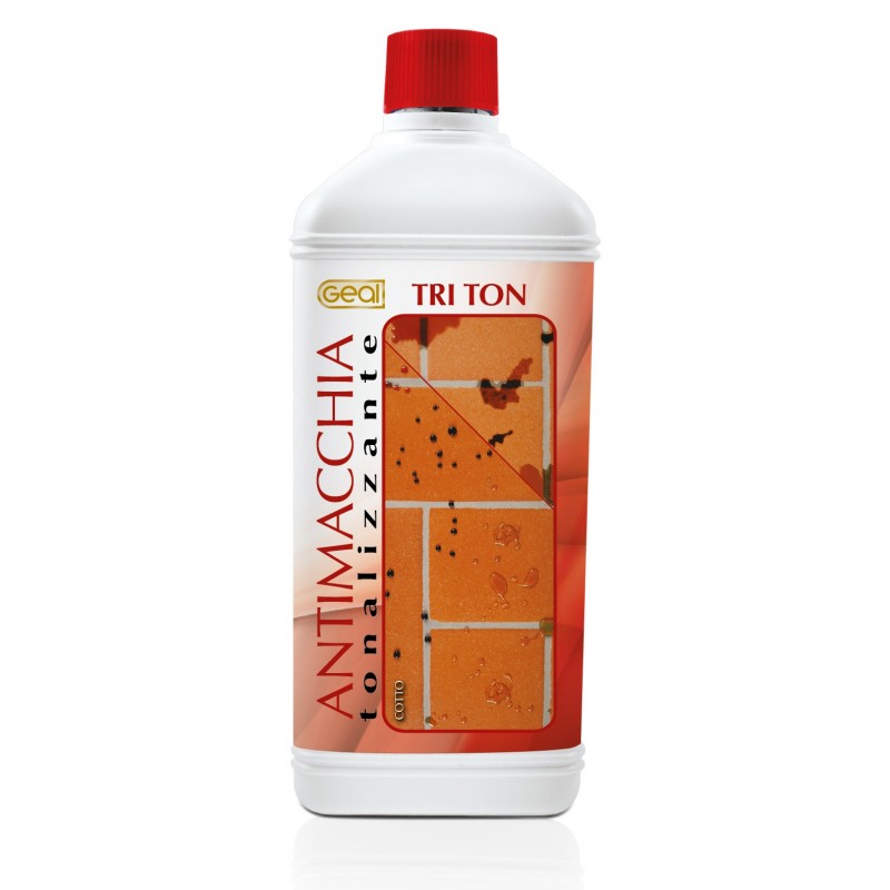 Triton (Geal) evita la formazione di efflorescenze, muffe e macchie di umidità; riduce l'assorbimento di sostanze oleose, grasse e idrosolubili causa di macchie e aloni persistenti. Non crea film e non modifica la sostanziale traspirabilità del materiale. Come protezione superficiale evita la penetrazione profonda delle sostanze macchianti facilitandone la rimozione con detergenti. Conferisce tonalizzazione al materiale con intensità variabile a seconda della quantità di prodotto applicata. E' compatibile con eventuali ulteriori trattamenti di finitura (Base+Woplus Geal); in esterni con Extern (Geal). Triton (Geal) non ha funzione impermealizzante assoluta, quindi non deve essere utilizzato su materiali a diretto contatto con acqua in pressione come ad esempio nelle strutture di contenimento dell'acqua quali serbatoi, vasche, piscine ecc.