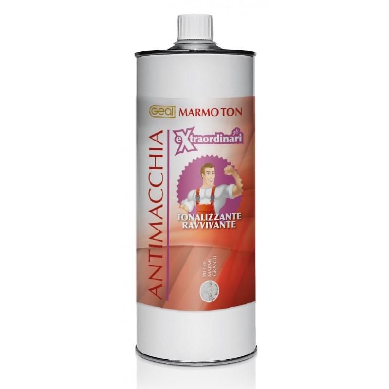 Marmo Ton (Geal) conferisce leggero e persistente “effetto bagnato ” e lucentezza sericea alle superfici lapidee non lucidate, esalta in maniera persistente la naturale colorazione e venatura di materiali levigati, sabbiati, martellinati, anticati e grezzi o con altro tipo di lavorazione meccanica. Ottima resistenza alle radiazioni solari, non ingiallisce nel tempo. Non crea spellicolamenti nè screpolature, anche dopo invecchiamento. L'effetto tonalizzante aumenta in funzione della quantità di prodotto applicato, senza provocare ingiallimenti nè alle fughe nè al materiale. Conferisce finitura per impregnazione, non creando film o spessore in superficie; è rilucidabile sulle pavimentazioni. Costituisce trattamento di finitura resistente, rinnovabile, reversibile, di facile e rapida applicazione. Può essere utilizzato da solo o su trattamenti idrorepellenti di profondità (quale ad esempio ICR 17 Geal). Per le superfici a pavimentazione si consiglia di far seguire a Marmo Ton (Geal) l'applicazione di Woplus lucido/opaco/no lux (Geal) a seconda della porosità del materiale allo scopo di aumentarne la protezione antimacchia e antiusura.