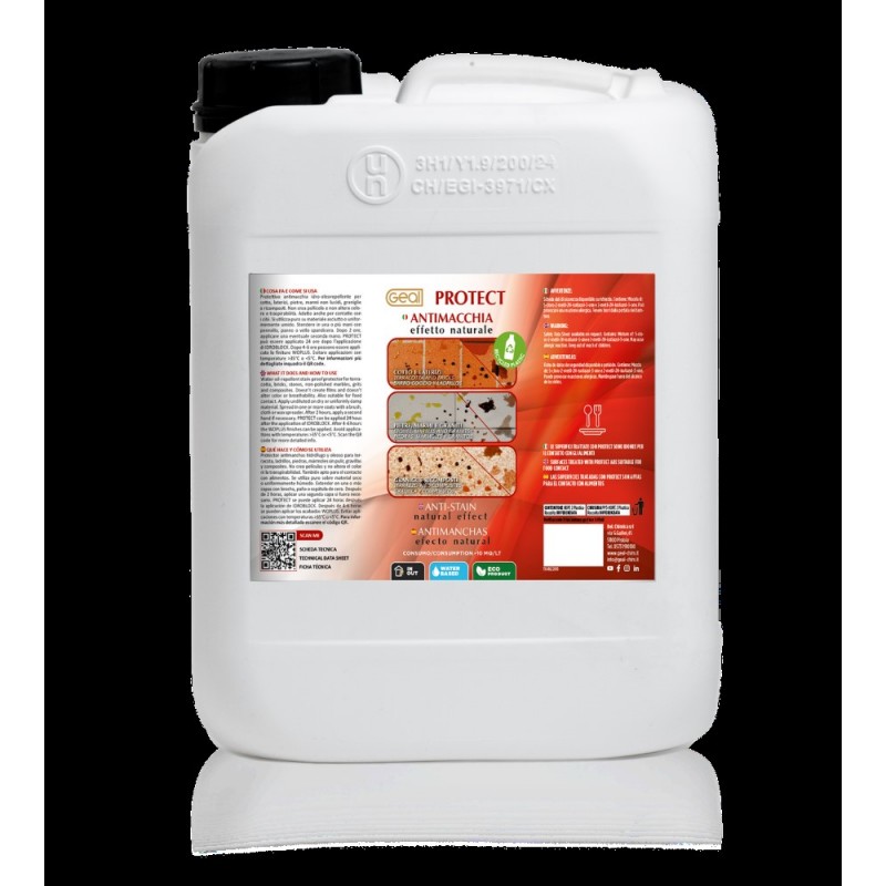 Protect (Geal) è un prodotto idro-oleorepellente in base acqua, si usa sia all'interno che all'esterno coperto. Protettivo antimacchia profondo nel trattamento di finitura di cotto. Non crea filmazione né altera il colore originario e la traspirabilità del materiale. Si può utilizzare su materiali precedentemente trattati con prodotti idrorepellenti di profondità (Super Idroblock, Icr 17 Geal). In interni si applica prima dei prodotti di finitura in base acqua (Base+Woplus - Geal). Di facile applicazione il prodotto asciuga rapidamente, consentendo la stesura della finitura dopo 1-2 ore. In esterno può essere usato da solo o seguito dalla finitura con Extern (Geal). Le superfici trattate con Protect (Geal) non devono essere pulite con detergenti fortemente alcalini (es. candeggina, detergenti con ammoniaca).